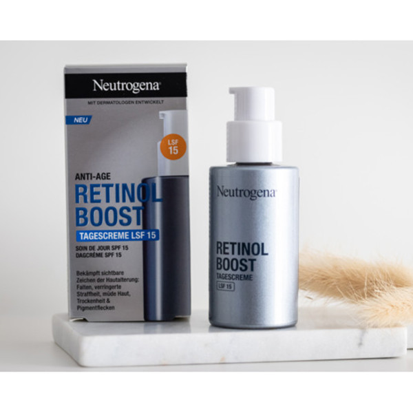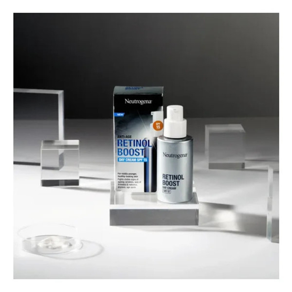 کرم روز محافظ با فاکتور محافظت در برابر آفتاب 15 Retinol Boost به لطف وجود رتینول در ترکیبات خود، پوست را ابریشمی خواهد نمود و چروکهای پوستی را از بین خواهد بود. این ضد چروک نوتروژینا بسیار سبک بوده و فورا جذب پوست میگردد. با فرارسیدن علائم پیری مانند چین و چروک، پوست خاصیت ارتجاعی و درخشندگی خود را از دست میدهد. خشک شده و لکه های تیره بر روی پوست ظاهر میگردند . ترکیبات رتینول با مبارزه نمودن با تمامی این عوامل پوست شما را از پیری نجات داده و در نتیجه پوستی سالم، یکدست و درخشان را برای شما به ارمغان خواهد آورد.