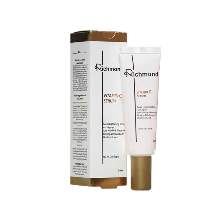 سرم ویتامین C ریچموند یک محصول مراقبت از پوست است که برای انواع پوست، مناسب است. این سرم حاوی ویتامین C غنی و مواد آنتی اکسیدانی است که به پوست شما کمک می کنند از آسیب های محیطی مانند آفتاب، آلودگی و استرس محافظت کنند. همچنین، این سرم حاوی مواد آبرسانی کننده و تغذیه کننده است که به پوست شما کمک می کنند نرم، لطیف و سالم باقی بماند.
