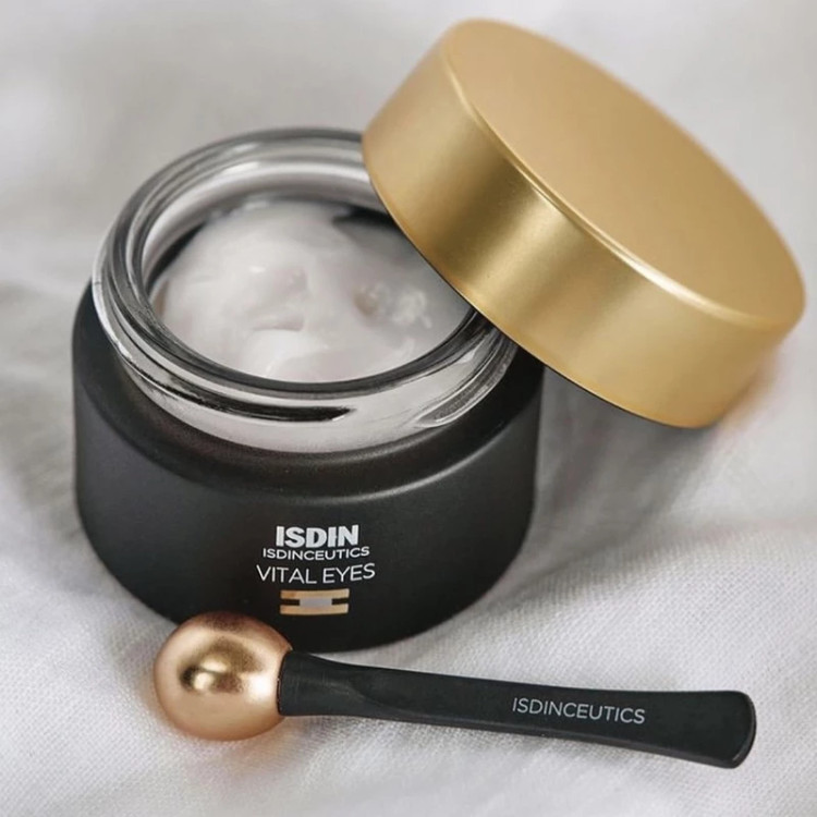 کرم ضد چروک دور چشم شب ویتال آیز ایزدین (Isdin Isdinceutics Vital Eye Cream) یک کرم ترمیم کننده خطوط دور چشم با ملاتونین و کافئین است که به صاف شدن خطوط بیان و چین و چروک کمک می کند. ترکیبات آن دفاع آنتی اکسیدانی پوست را تحریک می کند و یک عمل سم زدایی ایجاد می کند. اپلیکاتور ویتالایز یک اثر خنک کننده ایجاد می کند که به رفع احتقان ناحیه دور چشم و طراوت ظاهر آن کمک می کند. نتایج این محصول فقط در 28 روز قابل مشاهده می باشد.
