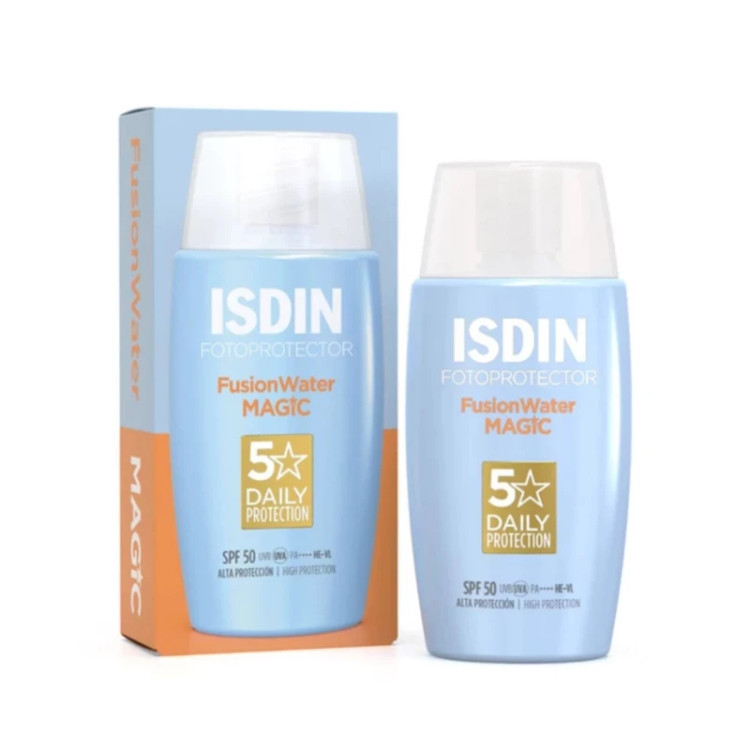 ضدآفتاب فیوژن واتر مجیک ایزدین یکی از انواع ضد آفتاب های برند ایزدین است که بافتی فوق العاده سبک و زود جذب روی پوست داشته و برای استفاده روزانه ایده آل است. این ضد آفتاب علاوه بر محافظت بالا از پوست در برابر اشعه های مضر نور خورشید با SPF50، پوست را رطوبت رسانی کرده، چربی آن را کنترل میکند و دارای خاصیت آنتی اکسیدانی است. ضد افتاب ایزدین مجیک برای پوستهای چرب ایده آل است، فاقد روغنهای معدنی است، جلوهای کاملا مات روی پوست دارد و احساس چربی و سنگینی ایجاد نمیکند.