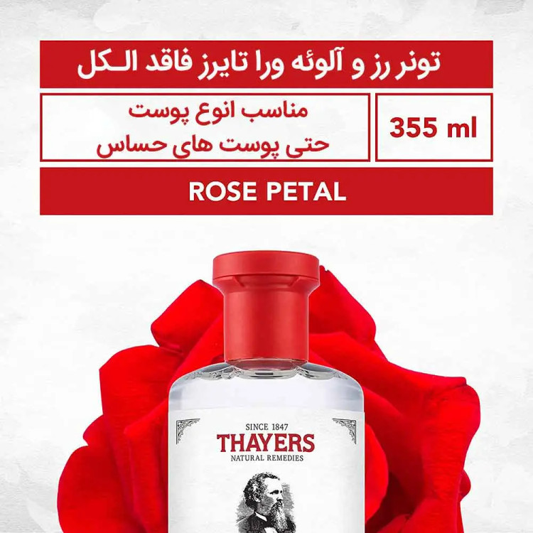 تونر گیاهی برند Thayers حاوی عصاره آلوئه ورا و گل رز می باشد که فاقد الکل و دیگر مواد مضر است و به همین دلیل پوست را تسکین می دهد و التهاب و قرمزی ناشی از الکل را حس نخواهید کرد.