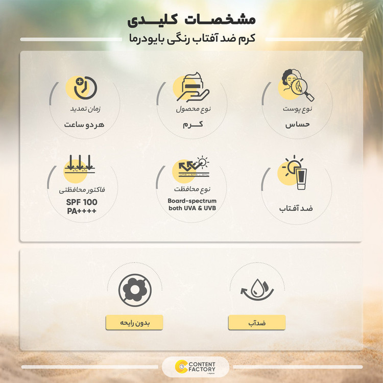 فلوئید ضد آفتاب رنگی بایودرما مدل فتودرم مکس SPF100 به یکی از گزینه های ایده ال برای محافظت از پوست در برابر اشعه های مضر آفتاب نظیر UVA و UVB می باشد. این ضد آفتاب یکی از بهترین محصولات مراقبتی برای پوست های حساس به نور و خورشید می باشد و گزینه ای مناسب برای بعد از درمان های لیزر تراپی پوست می باشد. ویتامین E به عنوان آنتی اکسیدانی قوی در این ضد آفتاب، مسئول محافظت از پوست در برابر رادیکال های آزاد می باشد و در ترکیب با سایر عوامل محافظ وظیفه جلوگیری از آسیب های خارجی و جلوگیری از پیری زودرس پوست را فراهم می کند. فتودرم مکس فلوئید BIODERMA آبرسانی 8 ساعته پوست را فراهم می کند و نیاز به استفاده از کرم های آبرسان را به حداقل می رساند