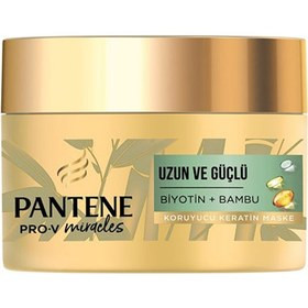 ماسک موی کراتینه پنتن Pantene حاوی بیوتین و بامبو حجم 300 میلی یکی از جدیدترین محصولات شرکت پنتن PANTENE می باشد. ماسک موی پنتن غنی شده با پروتئین پرو وی، کراتین، بامبو و بیوتین از موها در مقابل فاکتورهای آسیب رسان مراقبت می کند و به داشتن موهایی قدرتمند کمک شایانی می کند. قابلیت تغذیه کنندگی عمیق آن سبب افزایش مقاومت و استحکام بینظیر موها می گردد و سبب رشد سالم موها بدون شکنندگی می گردد. این محصول برای افرادی که علاقه زیادی به داشتن موهایی بلند دارند گزینه ایده آلی به نظر می رسد. چرا که نتیجه استفاده از آن موهایی بلند تر و سالم تر خواهد بود. از دیگر مزایای خوب این محصول می توان به ترکیبات عاری از سیلیکون، مواد رنگی و روغن های معدنی اشاره کرد که جذابیت خرید آن را برای افرادی که به سلامت موهایشان اهمیت می دهند افزایش می دهد.