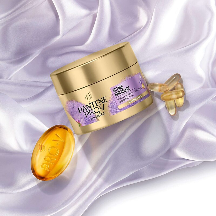 ماسک نجات موی قوی Pantene با استفاده از بیوتین و پروتئین ابریشم هیدرولیز شده، برای موهای آسیب دیده به ترمیم آسیبهای شدید کمک میکند.