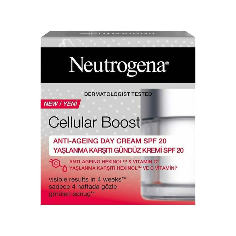 کرم ضد چروک روز Cellular Boost نوتروژینا از دسته ی ضد چروک و یا Anti-Aging می باشد.این کرم با فرمولاسیون شامل ویتامین C خاصیت انعطاف پذیری پوست را افزایش داده و از پیری و کدر شدن پوست جلوگیری می کند. این محصول یک آبرسان عمیق بوده و مناسب برای انواع پوست می باشد. تحقیقات نشان داده است که با استفاده از این کرم، علائم پیری زودرس به سرعت کم شده و لک و تیرگی پوست برطرف می شود. توصیه می شود این کرم همراه با یک کرم ضد چروک روز SPF 20 استفاده شود تا بهترین تاثیر را داشته باشد. شما می توانید تاثیر این کرم را نهایتا تا مدت زمان 4 هفته بر روی پوستتان مشاهده کنید.