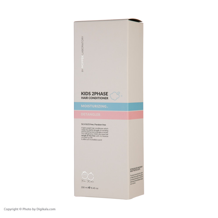 سرم دوفاز کودک موپک گره بازکن و آبرسان است که حاوی بیوتین و پروتئین گندم می باشد و همچنین فاقد ترکیبات سولفات و پارابن است. موها در کودکی نازک ترند و با افزایش سن ضخامت تارهای مو نیز افزایش می یابد. نازکی تارها باعث می شود شانه زدن موها پس از استحمام برای کودک آزار دهنده باشد. کاندیشنر دوفاز کودک موپک تارهای مو را نرم و لطیف کرده و از ایجاد گره یا وز جلوگیری می نماید.