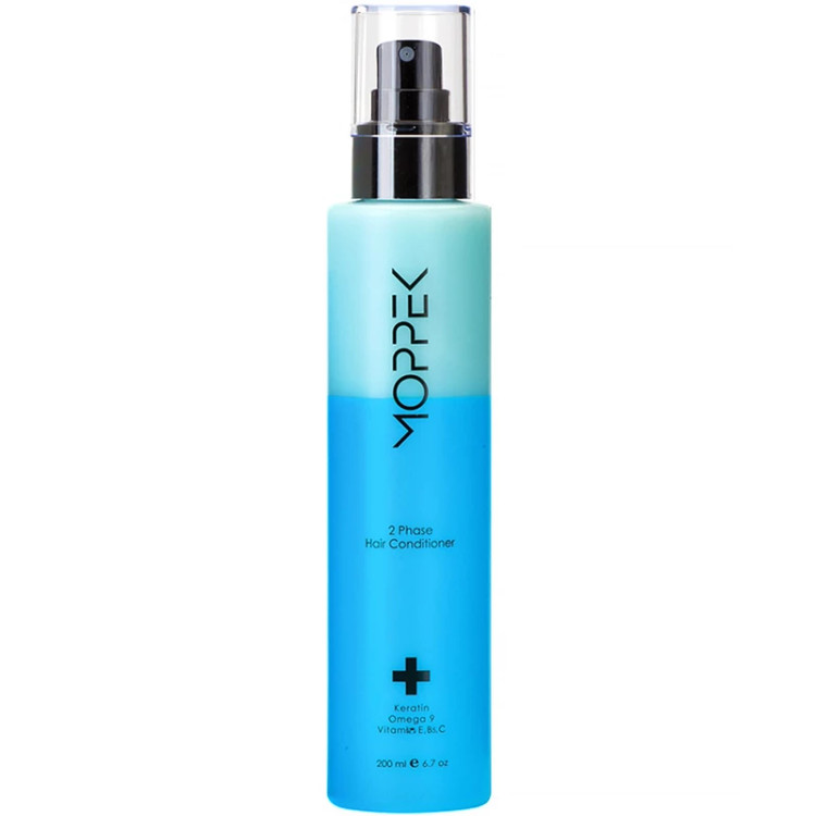 سرم دو فاز کراتینه «موپک» (Moppek) جهت نرمکنندگی و ایجاد سهولت در شانه زنی و گره باز کنی موها بعد از استحمام مورد استفاده قرار می گیرد. این سرم دو فاز باعث حفظ رطوبت و طراوت مو پس ازشستشو می شود. کراتین موجود در سرم آبی رنگ موپک در ترمیم موهای آسیب دیده و بازسازی ساقه موثر می باشد.عصارهای طبیعی به کار رفته در سرم دو فاز کراتینه موپک سرشار از آنتی اکسیدان ها و امگا9 می باشند که همگی باعث تقویت ساقه مو و بدنه مو می شوند. سرم دو فاز موپک در دو رنگ صورتی و آبی با دو رایحه متفاوت عرضه می گردد که سرم صورتی برای موهای خشک و سرم آبی برای موهای چرب مناسب می باشند. برای مصرف این سرم ابتدا محتوی بطری را تکان داده تا 2 فاز آن به خوبی ترکیب شود سپس آن را بر روی ساقه موهای خود اسپری نمایید. توجه داشته باشید پس از استفاده از این سرم نیازی به آب کشی مو نمی باشد. این سرم هم برای موهای مرطوب و هم موهای خشک قابل استفاده می باشد. لابراتوار موپک با هدف تولید محصولاتی با کیفیت، کارا و متناسب با نیاز مصرف کننده تأسیس گردید و شروع به تولید انواع محصولات تخصصی مراقبت از مو شامل انواع سرم های مو، ماسک مو، محلول ضد ریزش و شامپوهای تخصصی میپردازد.