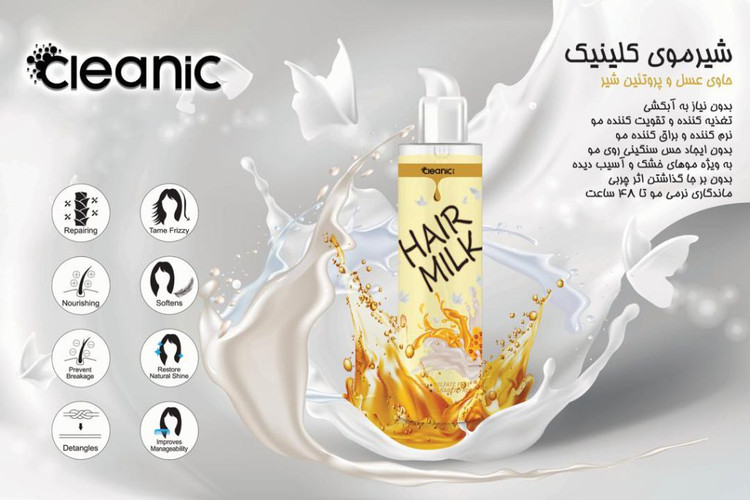 شیر مو عسل کلینیک در حجم 250 میل تهیه شده است و جایگزین بسیار مناسبی برای کراتین درمانی است.این محصول بدون سولفات و پارابن میباشدو احیا کننده 100درصد موهای آسیب دیده است و به علت دارابودن پروتئین شیر و عسل عمل تغذیه عمیق بافت موهاو آبرسانی مو را انجام میدهد.همچنین برای ترمیم موخوره و جلوگیری از وز شدن مو استفاده میشود و موجب درخشش و شانه پذیری مو میشود.