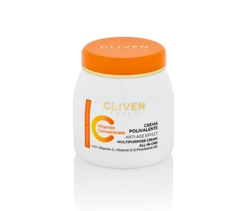 کرم چند منظوره ویتامین C کلیون حاوی ویتامین سی است که یک آنتی اکسیدان قوی است و می تواند پوست را از آسیب های ناشی از رادیکال های آزاد محافظت کند. ویتامین سی همون خاصیت التیام بخش، ضد التهاب، ضد قارچ، ضد باکتری و مرطوب کننده دارند. این عصاره ها باعث تسکین التهابات پوست، جلوگیری از خشکی و تقویت سلامت پوست می شوند.
