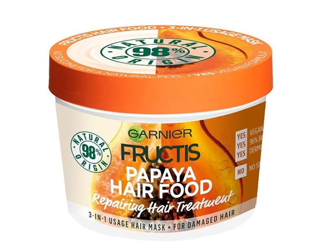 ماسک مو سوپر فود پاپایا گارنیر 390 میل دارای فرمول باکیفیت شامل 98 درصد عصاره طبیعی می باشد و هر آنچه موهای شما به آن نیاز داشته باشد را تامین می کند. این ماسک مو دارای خاصیت تغذیه و احیا کنندگی موهای آسیب دیده و شکننده است. این محصول میتواند با کمک روغنهای گیاهی معجزهآسا، موها را تقویت کند و آسیب وارد شده به آنها را جبران نماید. فرمول سبک و طبیعی این محصول به ساقههای مو به خوبی نفوذ کرده و با افزایش قدرت و استحکام موها، به بازگشت ظاهر طبیعی و سالم تارهای مو کمک می کند.