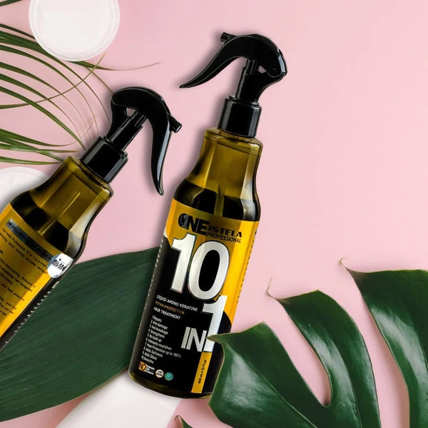 اسپری موی 10 کاره وانایستلا پروفشنال مناسب موهای نازک و ضعیف است. این محصول تقویت کنندهای قدرتمند و غنی شده با مواد مغذی است که زیبایی و شفافیت را برای تارمو به ارمغان خواهد آورد. فاز اول این اسپری سرشار از پروتیین هیدرولیز شده سویا و گندم ، ابرسان مواد تقویت کننده است که با احیای فولیکول مو موجب ترمیم و بازسازی سلولهای مو شده و از موها در برابر گرمای سشوار و اتو محافظت میکند. این محصول حاوی آلانتوئین می باشد که کمک بسزایی دردرمان شوره سر و تقویت کردن موها داشته باشد و همچنین میتواند کراتین مورد نیاز را به ریشه مو منتقل کند به همین علت به عنوان عنصری ارزشمند در تقویت موهای آسیب دیده و از بین برنده خشکی مو خواهد بود درفاز دوم این اسپری که سرشار از مواد ویتامینه و تغذیه کننده و نرم کننده است که موها را عمیقا لطیف و براق کرده و محصول با ایجاد یک لایه از مو در برابر آسیب های محیطی و اشعه های مضر خورشیدی نیز جلوگیری نموده. این اسپری دو فاز با فرمالیسیون قوی و مغذی خود موهای شما را نرم و لطیف و درخشان میکند. در ترکیبات این اسپری از پروتیین های هیدرولیز شده و عصاره ها و مواد سیلیکونی استفاده شده است که در درجه اول مرطوب کننده عالی و در درجه دوم حافظ رطوبت مو هستند. که یک محصول آبرسان بی نظیر برای موهای ضعیف است و از تار مو در برابر وز شدگی وخشکی محافظت کرده و آثار وسایل حرارتی را نیز کاهش میدهد.
