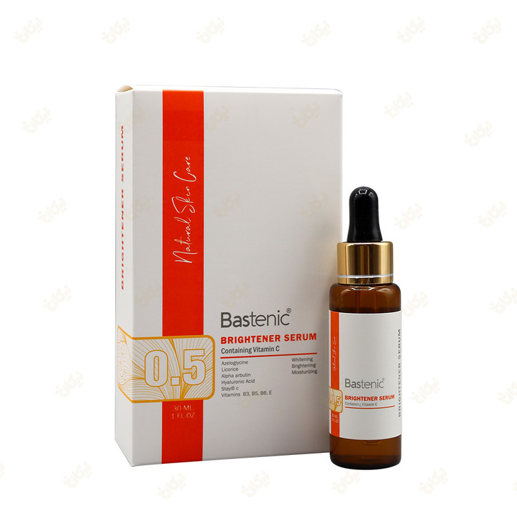 سرم روشن کننده پوست حاوی ویتامین C باستنیک یک محصول مناسب برای روشن کردن پوست، رفع تیرگی ها و لک های پوستی است. سرم روشن کننده پوست حاوی ویتامین C باستنیک علاوه بر موارد گفته شده باعث شادابی پوست و رفع علائم خستگی و پیری پوست میشود. تغذیه پوست، حفظ رطوبت و آبرسانی و جلوگیری از افزایش سن ناشی از نور خورشید از دیگر ویژگی های سرم روشن کننده پوست حاوی ویتامین C باستنیک است.