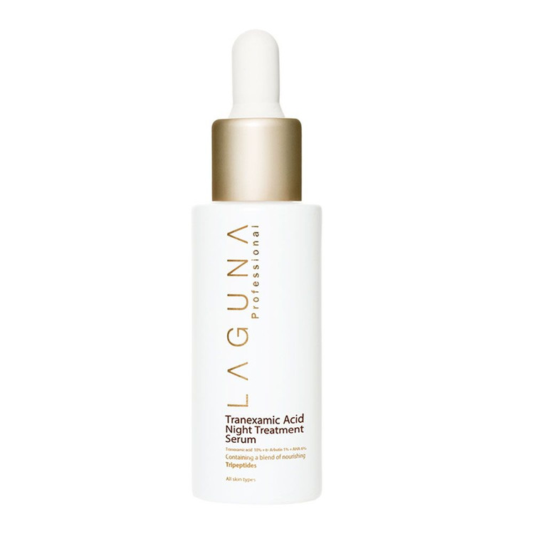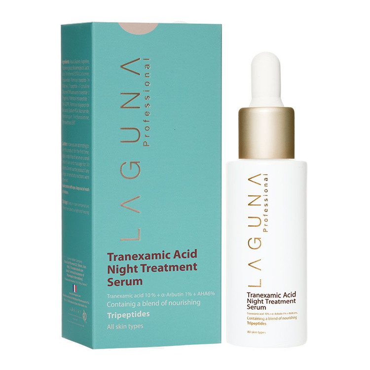 سرم روشن کننده و ضد لک ترانگزامیک اسید پروفشنال لاگونا محصولی از برند ایرانی لاگونا است. این سرم شب چند کاره به وضوح کدری پوست را برطرف کرده و به روشن سازی و ظاهری صاف و یکدست کمک می کند. ترانگزامیک اسید و انواع پپتید قرار داده شده در این محصول به مرور زمان منافذ پوست را کاهش می دهد. پپتید ها با حمایت از عملکرد آنزیمی طبیعی پوست و همچنین تقویت گردش سلولی منافذ پوست را کاهش داده و پوست صورت را صاف می سازد. علاوه بر این با یک بار استفاده به سرعت کدری پوست را برطرف و به وضوح روشن می کند.