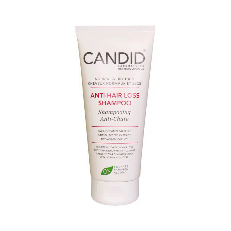 شامپو ضد ریزش موی نرمال و خشک کاندید هورمون DHT (هورمون عامل ریزش مو) را کاهش داده و توسط مهار آنزیم 5آلفا-ردوکتاز موجب جلوگیری از ریزش مو میشود. این شامپو بدون سولفات حین افزایش گردش خون در پوست سر جهت تقویت رشد مو، ترمیم کننده و استحکام بخش موها است. به علت فرمولاسیون فاقد سولفات شامپو تقویت کاندید رنگ و رطوبت مو نیز حفظ میشود. این محصول با دارا بودن عوامل محافظ در برابر حرارت در زمان خشک کردن مو با سشوار از مو محافظت مینماید.