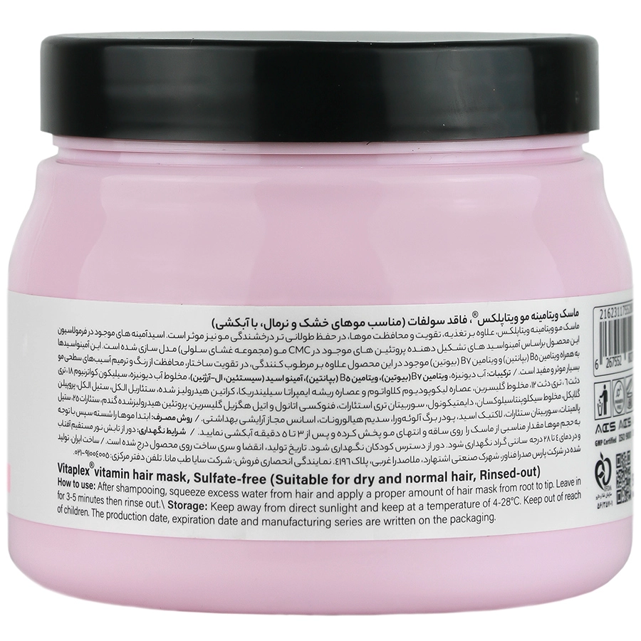 ماسک ویتامینه مو ویتاپلکس فاقد سولفات (مناسب موهای خشک و نرمال با آبکشی)حجم500میلی لیتر