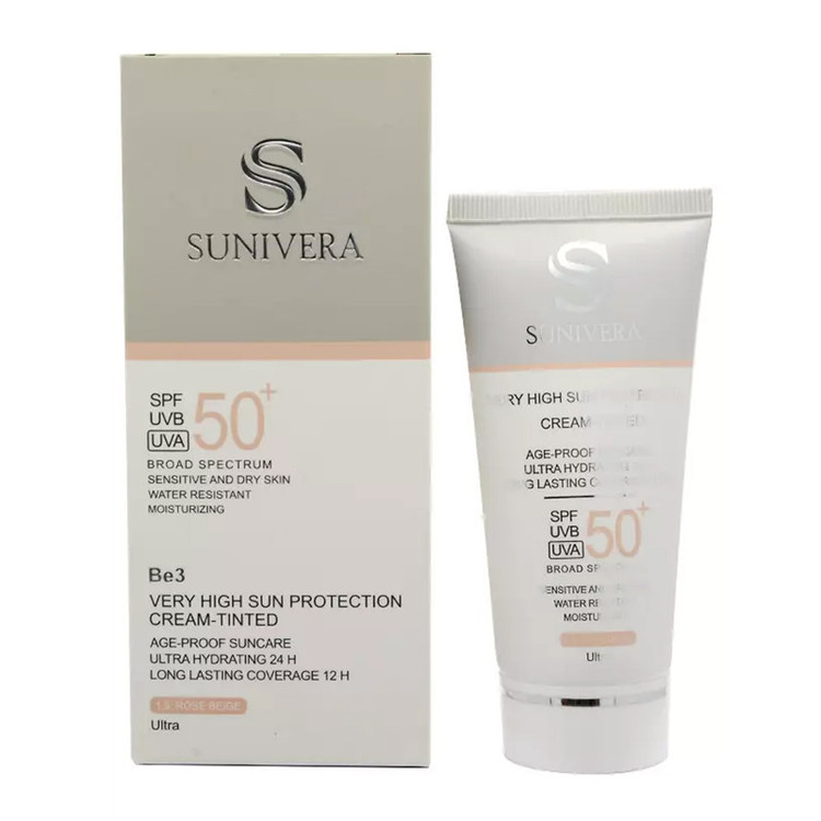 کرم ضد آفتاب رنگی سانیورا SPF 50 مدل (لایت بژ) مناسب پوستهای خشک و حساس حجم 50 میلیلیتر